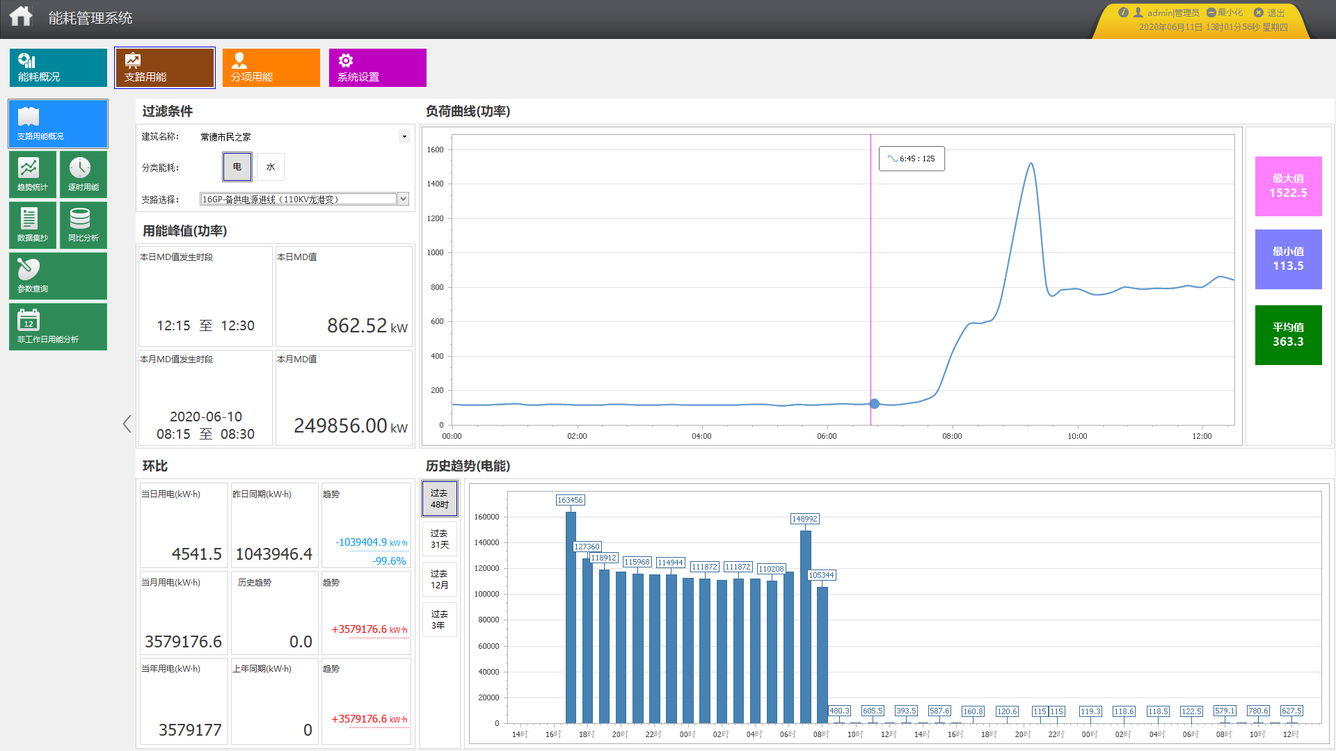 建筑的能耗管理系統(tǒng)可對(duì)建筑內(nèi)的數(shù)據(jù)進(jìn)行采集、統(tǒng)計(jì)與分析,數(shù)據(jù)發(fā)布與遠(yuǎn)傳,分析優(yōu)化能源運(yùn)行方案,記錄和積累能源使用狀況。系統(tǒng)通過(guò)各種圖表、曲線等從真正意義上實(shí)現(xiàn)能源使用的實(shí)時(shí)在線監(jiān)控,為管理者提供不同層次的管理權(quán)限,隨時(shí)隨地可以對(duì)變電所的用能情況進(jìn)行查看,并實(shí)現(xiàn)遠(yuǎn)程管理。能耗管理系統(tǒng)的建立,為業(yè)主提供了能源利用診斷、節(jié)能控制、節(jié)能潛力分析、節(jié)能效果驗(yàn)證,提高節(jié)能意識(shí)等提供有效手段。