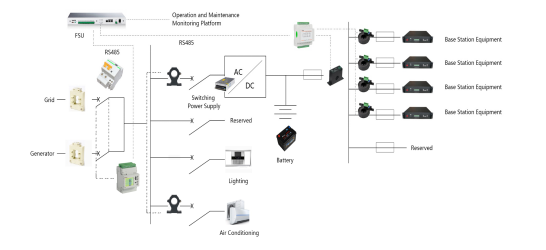 基站智慧用電云平臺通過對5G宏站和室分站點加裝交/直流智能監(jiān)控設備、無線采集設備以及系統(tǒng)管理平臺,完成夜間無業(yè)務時段的下電操作,減少電能消耗,降低運營成本支出,以及提升通信設備供電線路狀態(tài)的實時監(jiān)測保護功能;系統(tǒng)后臺對存儲的供電線路歷史電氣性能數(shù)據(jù)進行梳理、匯總、分析,找出故障原因,給出解決建議對策,減少后續(xù)同類故障的發(fā)生率,提升供電線路運維管控能力。