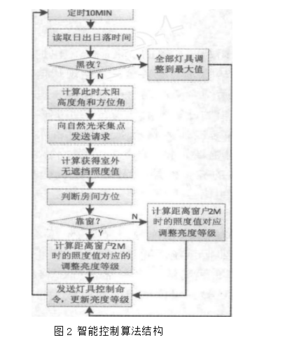 (1)隨著戶外自然光照強度的上升:戶內(nèi)人工照明燈具的亮度將隨之降低,反之,戶外自然光強度下降,戶內(nèi)照明燈具的亮度將升高。(2)根據(jù)太陽位置以及東升西落的特點對不同朝向的窗邊照明的影響,人工室內(nèi)照明要做不同權重的亮度調(diào)節(jié)。(3)戶內(nèi)人工照明實行梯級調(diào)光,即根據(jù)燈具與較近窗戶的距離不同而采用不同權重的調(diào)光。目前采用靠窗與不靠窗兩級策略。(4)戶內(nèi)燈具根據(jù)燈具類型分為可調(diào)光和不可調(diào)光兩類,前者實行8級調(diào)光,亮度等級隨自然光照明的變化改變。 不可調(diào)光只有開/關兩種功能,當自然光照明低于某閡值時, 則自動開啟.