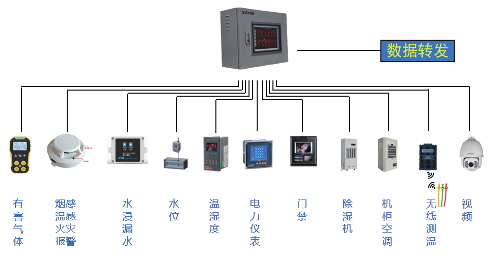 安科瑞電氣股份有限公司根據(jù)配電室實際情況,結(jié)合多年的變電站和配電室的運行管理經(jīng)驗,自主研發(fā)了安科瑞配電室綜合監(jiān)控系統(tǒng),實現(xiàn)了智能開關(guān)柜運行監(jiān)控、高壓開關(guān)柜帶電顯示、電流電壓等負載運行監(jiān)控、母線測溫監(jiān)測、電纜測溫監(jiān)測、環(huán)境監(jiān)測、有害氣體監(jiān)測、安防監(jiān)控、采暖通風(fēng)、門禁、燈光、風(fēng)機、除濕機、空調(diào)控制等功能。實現(xiàn)動力環(huán)境各數(shù)據(jù)的檢測與設(shè)備控制,實現(xiàn)動力環(huán)境優(yōu)化,避免運行環(huán)境的失控導(dǎo)致配電設(shè)備運行故障,保證維護人員安全,延長設(shè)備使用壽命,減少配電室粗放式管理導(dǎo)致成本過高,同時實現(xiàn)配電動力環(huán)境的分布式遠程管理。