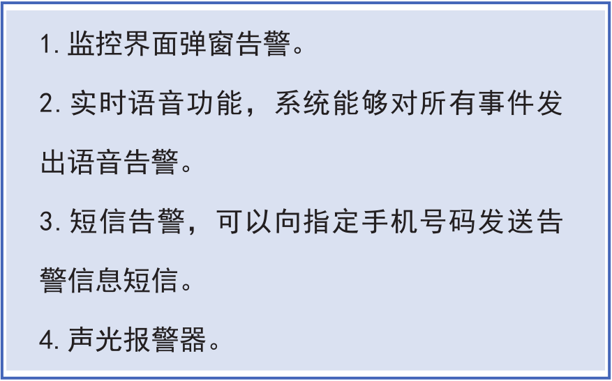 安科瑞智能配電室綜合監(jiān)控系統(tǒng)具有實時告警功能,系統(tǒng)能夠?qū)ε潆娛覝囟?、濕度、有害氣體、設(shè)備故障或通信故障等事件發(fā)出告警。告警方式如右圖所示: