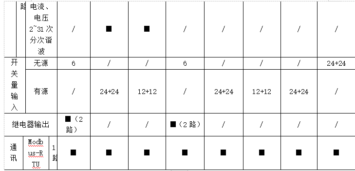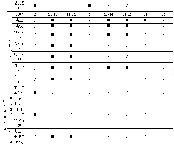 遙測:三相電壓、電流、有功功率、無功功率、視在功率、功率因數(shù)、有功電能、無功電能、電纜溫度,系統(tǒng)頻率、零序電流、零地電壓、漏電流、機(jī)柜溫度、機(jī)柜濕度、開關(guān)狀態(tài)、電壓/電流諧波含量、電流/功率;