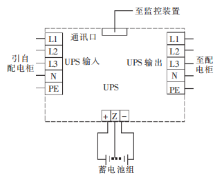 數(shù)據(jù)中心IDS 2000 供配電系統(tǒng)的供電電壓為 380 V 三相電,主要為所有弱電機柜內(nèi)的設(shè)備、應(yīng)急照明、區(qū)域中央控制指揮中心智能調(diào)度臺和其他智能化設(shè)施供電。在數(shù)據(jù)中心的列頭柜配置一體化配電集成柜,為空調(diào)、監(jiān)控、UPS 和網(wǎng)絡(luò)設(shè)備供電。在行間中部配置 UPS 不間斷電源柜,當(dāng)兩路輸入電源故障斷電時,機柜自動切換成 UPS 供電,保障設(shè)備不間斷持續(xù)工作。供配電系統(tǒng)接口圖如圖 2 所示。