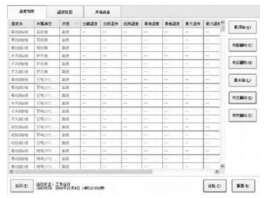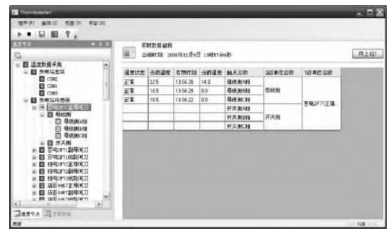 在溫度運行狀態(tài)監(jiān)視頁面(見圖5),可以對當(dāng)前配置的所有傳感器(對應(yīng)實際的溫度點)的溫度與運行狀態(tài)進(jìn)行監(jiān)視與顯示。顯示的信息包括在線離線狀態(tài)、超溫警告、溫升、實時溫度、溫度變化率和電池電壓等。雙擊某個傳感器信息,還可以得到它的詳細(xì)信息界面。